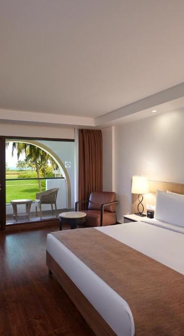Experience luxury in our Ocean View Suite, featuring spacious interiors, modern amenities, and breathtaking views of the Arabian Sea for a perfect getaway.